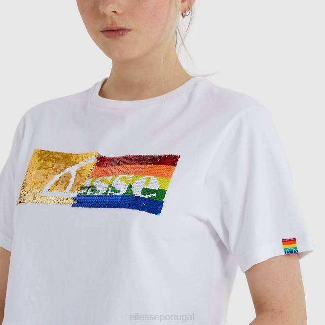 a camiseta cortada de unicórnio. comemore com estilo nesta temporada com a camiseta de unicórnio ellesse. esta camiseta cortada de ajuste padrão tem um decote canelado e mangas ajustadas para um ajuste otimizado. feita em apoio à organização LGBTI, a camiseta é completada com uma estampa de lantejoulas reversíveis no peito.
