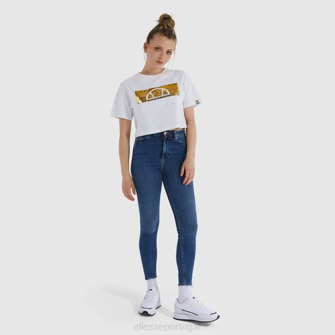 a camiseta cortada de unicórnio. comemore com estilo nesta temporada com a camiseta de unicórnio ellesse. esta camiseta cortada de ajuste padrão tem um decote canelado e mangas ajustadas para um ajuste otimizado. feita em apoio à organização LGBTI, a camiseta é completada com uma estampa de lantejoulas reversíveis no peito.